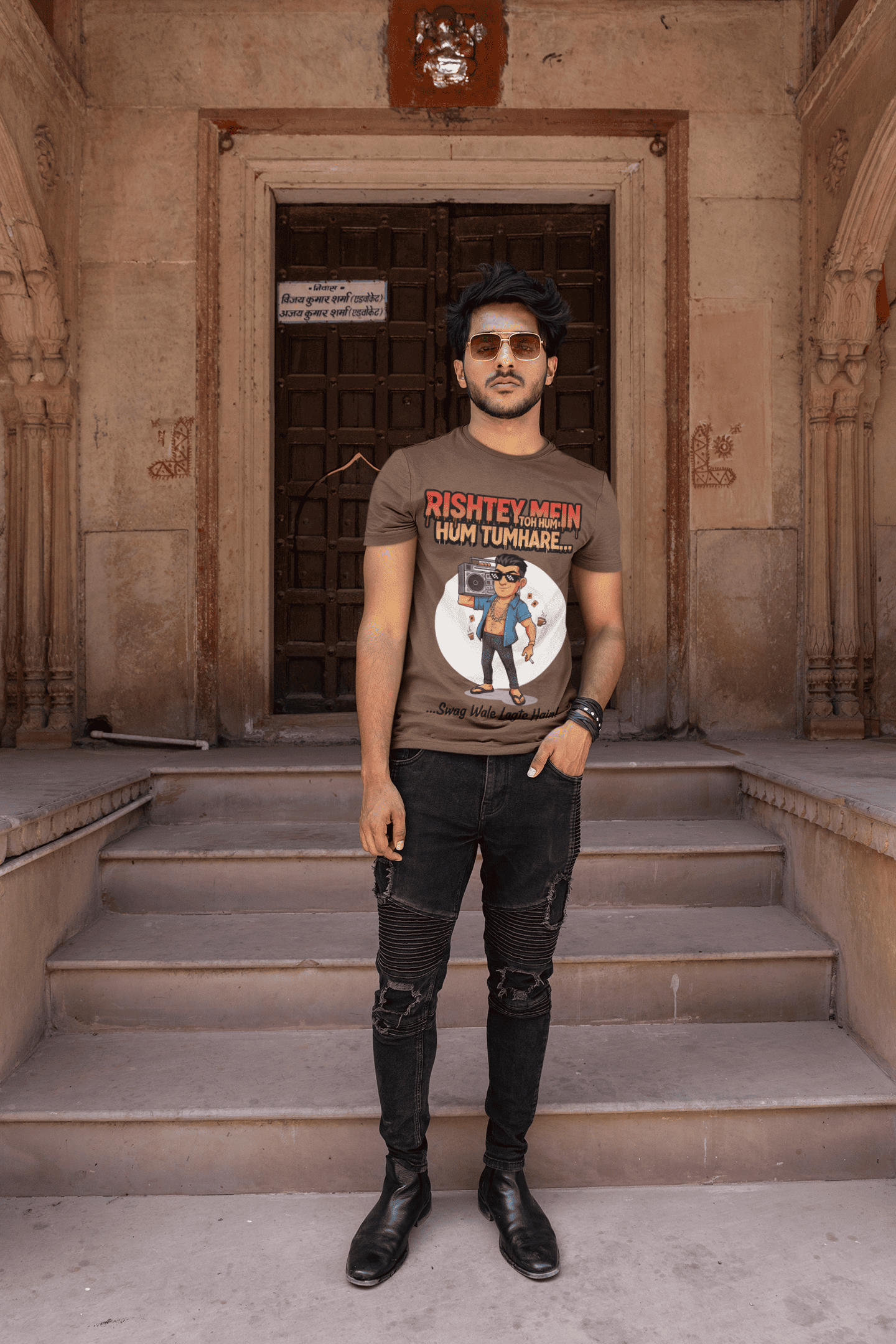 Capture the essence of timeless cinema with a playful twist. This unique Bollywood swag t-shirt reimagines the immortal words of Amitabh Bachchan: “RISHTEY MEIN TOH HUM… HUM TUMHARE…” with a hilarious, modern punchline: “…Swag Wale Lagte Hain!” It’s a witty statement that resonates with every desi movie lover, instantly recognizable and guaranteed to bring a smile. Perfect for social gatherings, casual outings, or simply lounging in style, this funny Hindi movie shirt lets you express your personality with authentic Bollywood flair.