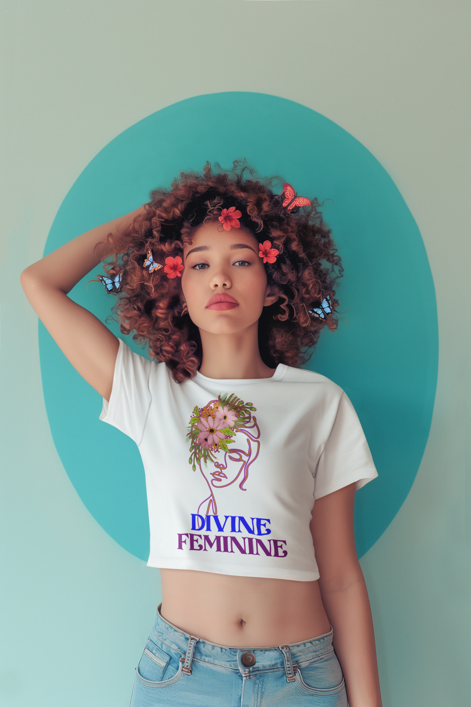 The design of the Divine Feminine Tee is not just aesthetically pleasing; it also carries a deeper message of self-love, self-acceptance, and empowerment. In a world where women are constantly striving to find their place and assert their presence, this tee serves as a powerful reminder of the beauty and strength that lies within. Whether you’re a fashion enthusiast, a spiritual seeker, or simply someone who appreciates unique and meaningful designs, the Floral crown crop top is an excellent choice.