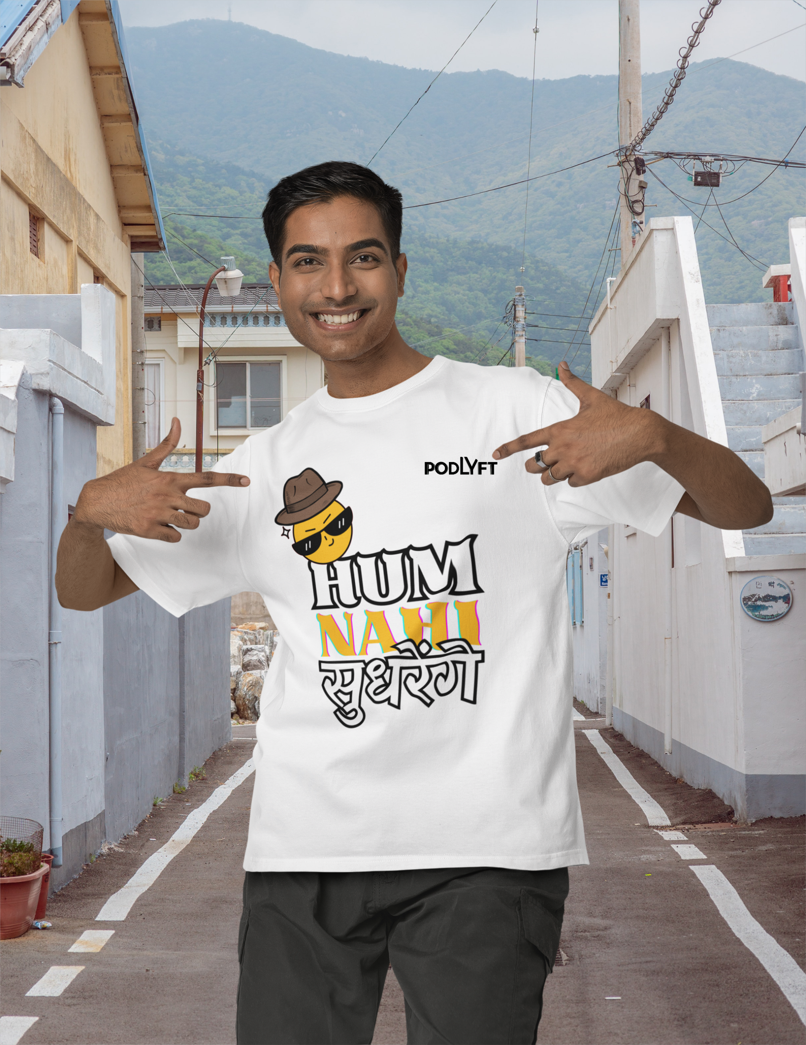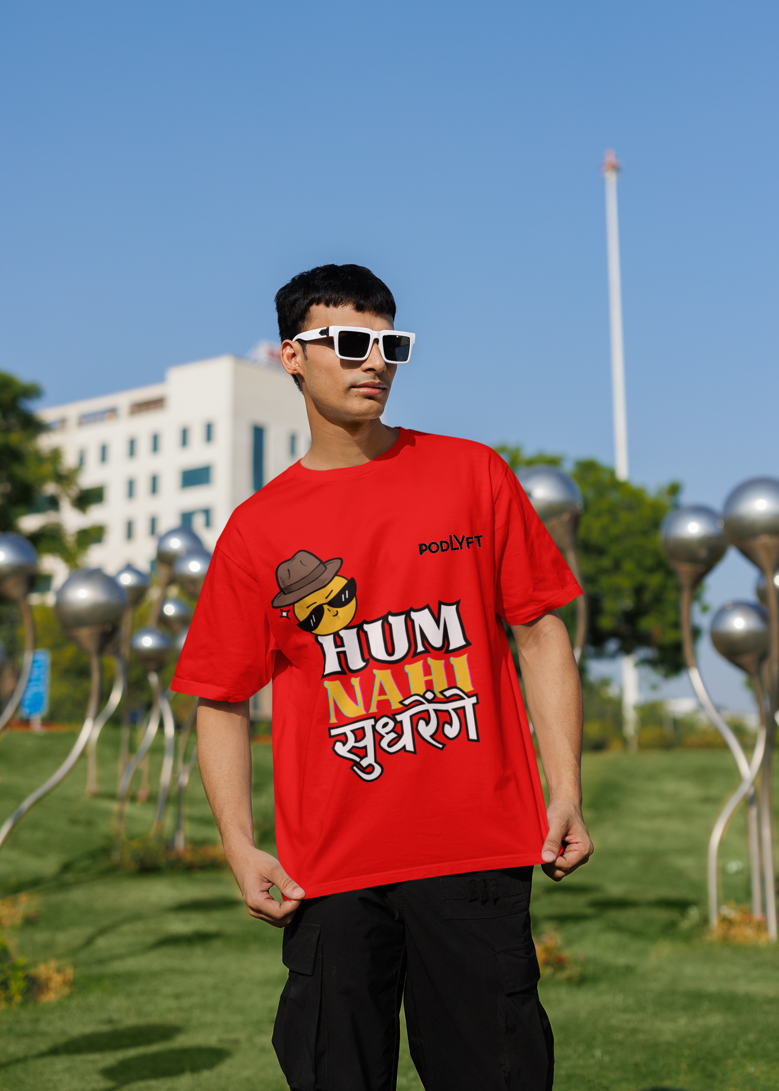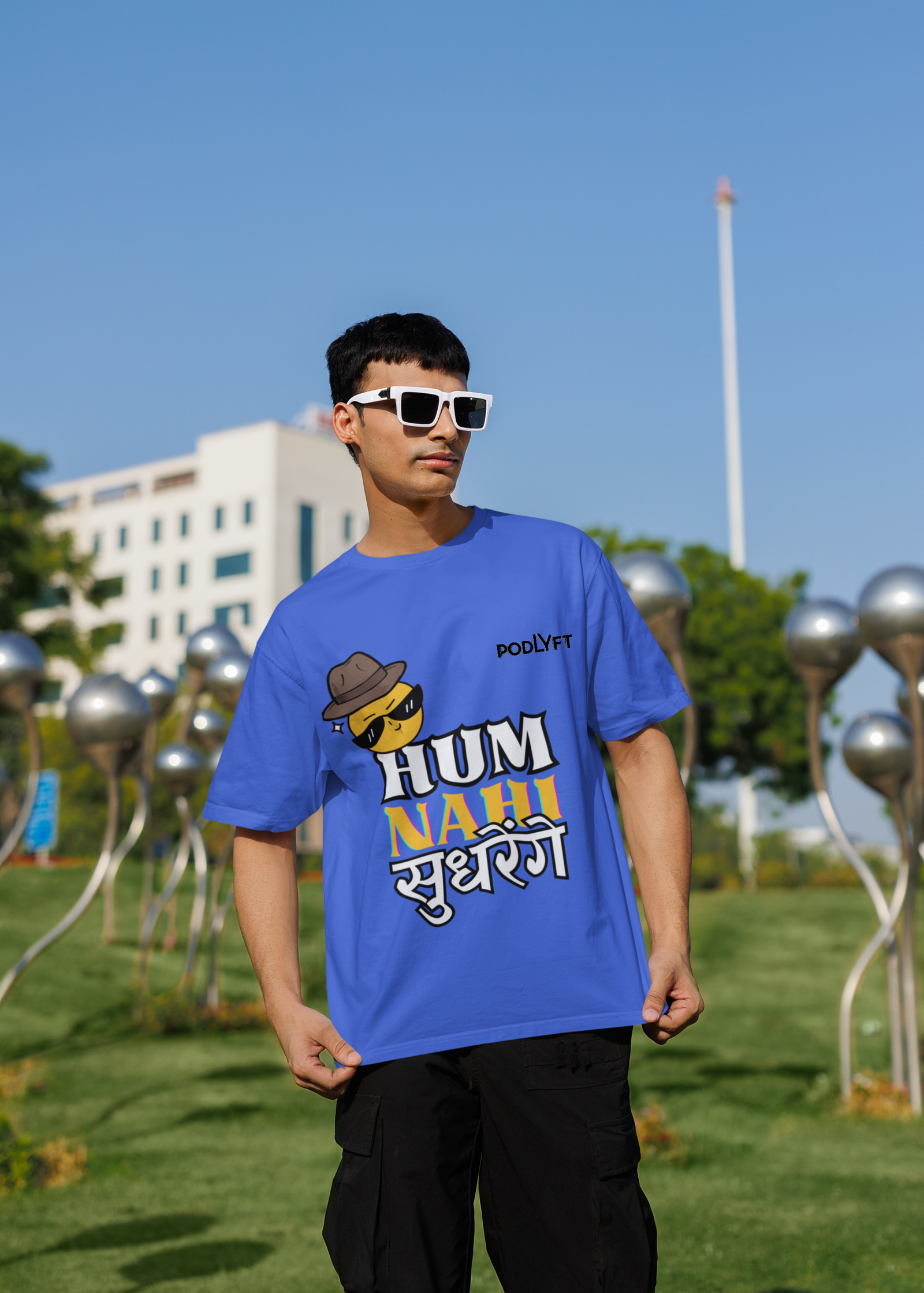 Ultimately, the Hum Nahi Sudhrenge tee effectively encapsulates a spirit of individuality, making it a compelling choice. Showcasing personal style while promoting a powerful message of authenticity makes this tee a valuable find for anyone looking to enhance their wardrobe.