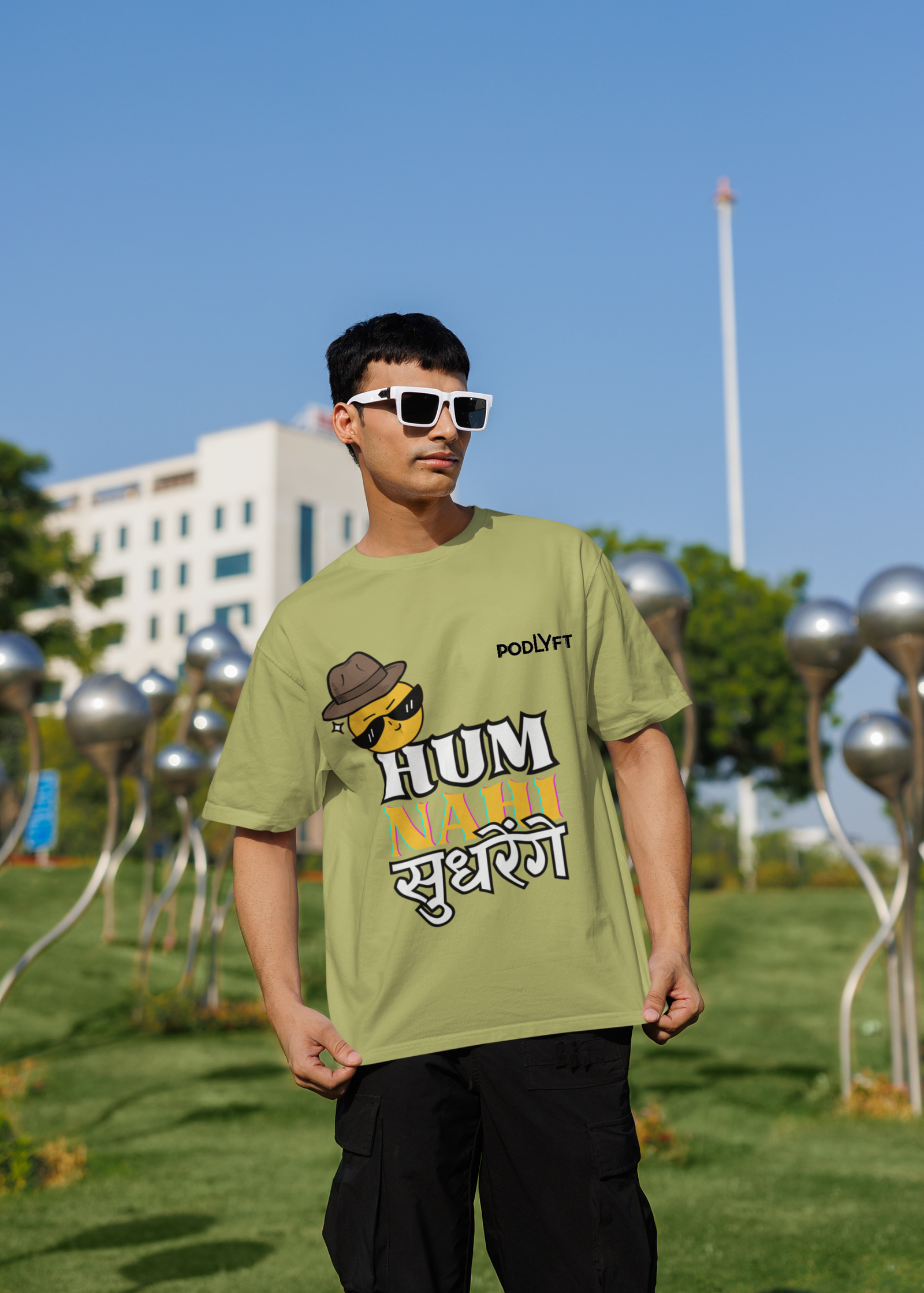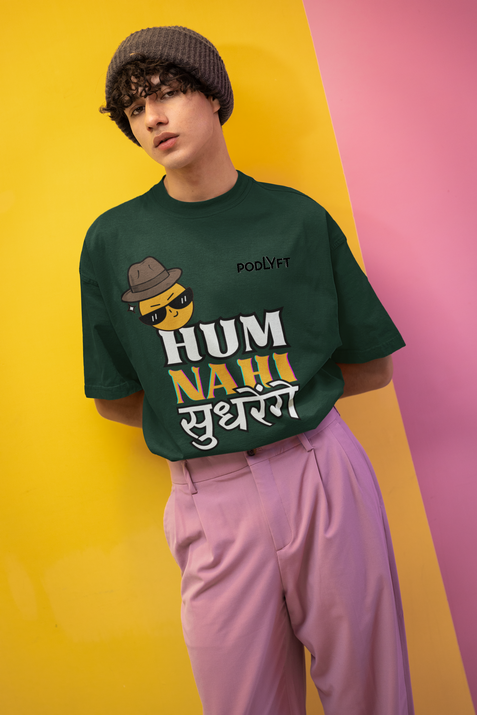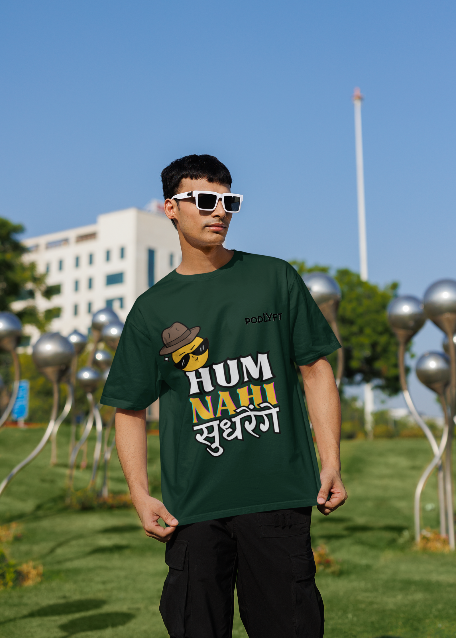 Ultimately, the Hum Nahi Sudhrenge tee effectively encapsulates a spirit of individuality, making it a compelling choice. Showcasing personal style while promoting a powerful message of authenticity makes this tee a valuable find for anyone looking to enhance their wardrobe.
