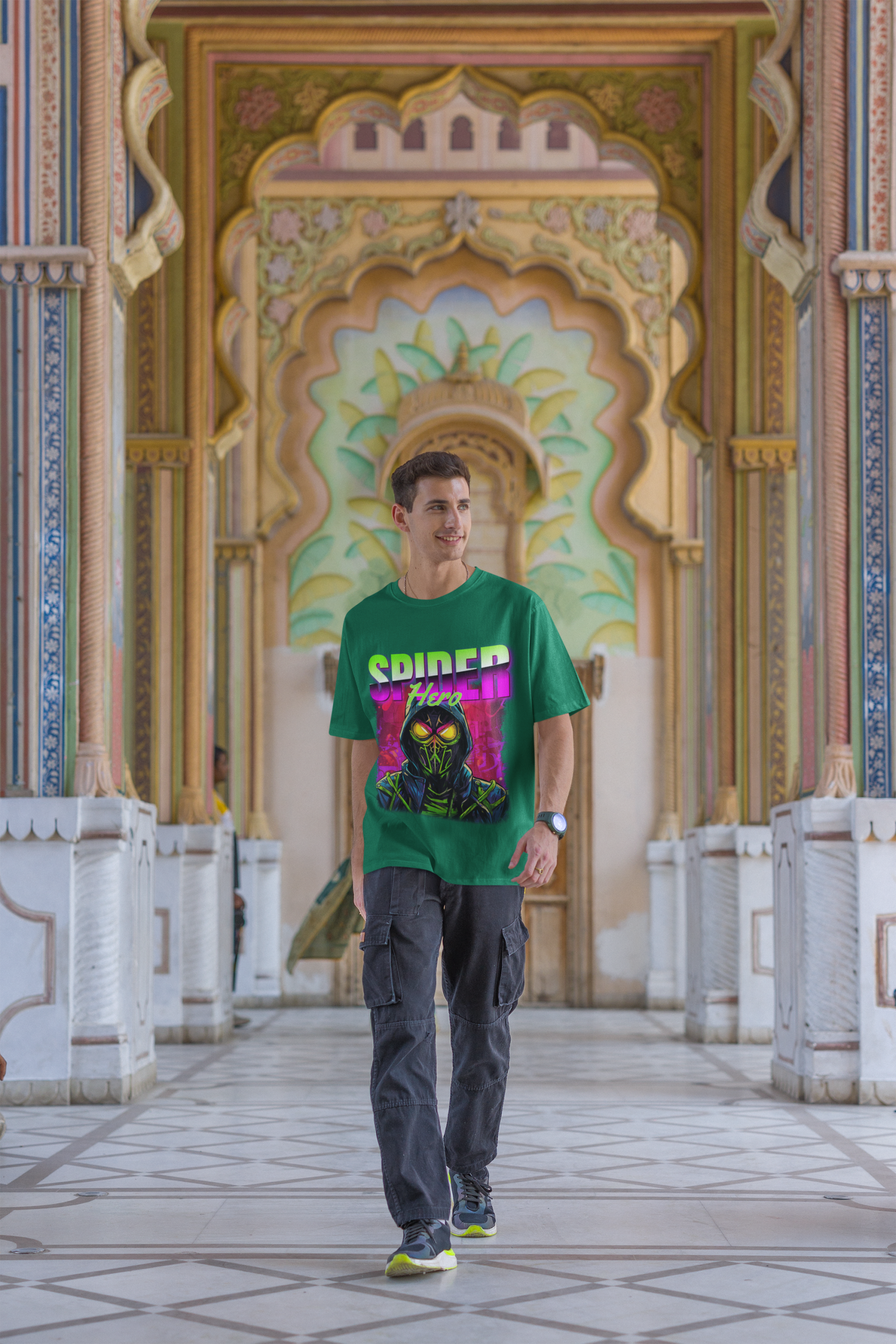 On the other hand, if you are planning a gym session, the Superhero Graphic T-Shirt can be paired with joggers or athletic shorts for optimal comfort. Opt for moisture-wicking materials to ensure versatility and performance. Don’t forget to complete the look with dark-toned athletic shoes for a cohesive and sporty vibe.